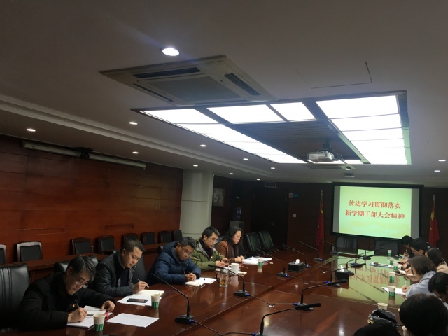 会上,党政办副主任肖帆同志带领大家对边慧敏书记干部大会的讲话要点进行了梳理和解读,传达了省委读书班暨警示教育专题班和全省教育工作会精神,寒假有关工作通报和2019年学校工作要点,谈到新时代新形势下的干部担当作为。随后,部门全体成员紧紧围绕今年学校工作大局,结合自身思想和本职工作谈了体会。