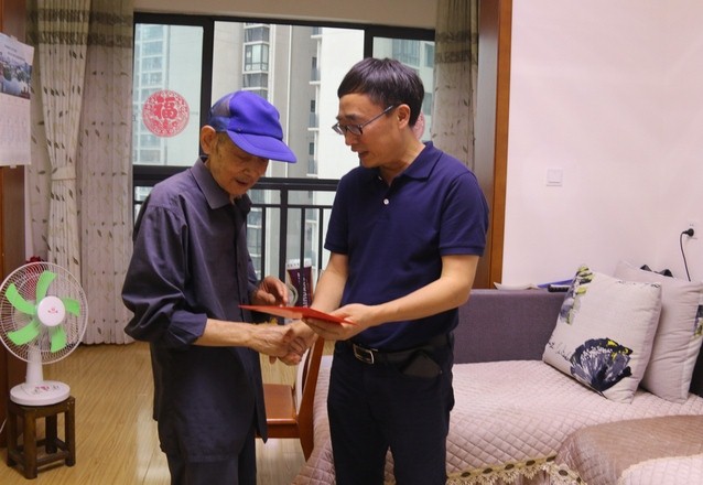 7月10日,校长刘清友来到退休老党员龚德文家中,亲手将慰问金送到他手中,感谢他长期以来对学校发展的关心和支持,并仔细询问了他的身体健康情况。