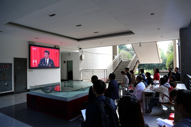 在整个收看过程中,师生们聚精会神,认真聆听了习近平总书记代表十八届中央委员会向大会所作的工作报告,不少师生仔细做着笔记,现场不时响起热烈的掌声。
