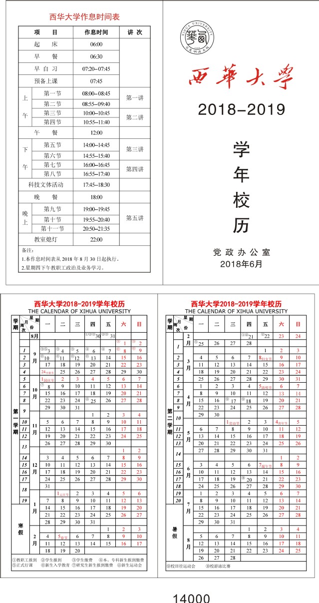 betway西汉姆联平台2018-2019学年校历(校本部)