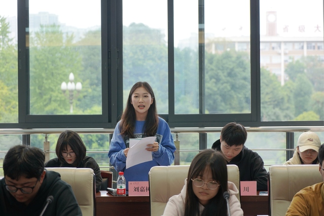 法学专业的宋国威同学对于课程设置提出了自己的看法,他建议加强实践性课程建设,学科之间交叉融合,让知识与能力做好衔接,并提出了自己对于学分比例的看法,认为在当今大环境下,“37比例”可以让学生更加注重平时的成绩,关注每时每刻的进步。对于课程建设,刘书记回应道,“这是一个非常好的建议,但是跨专业、跨学科学习应该在把本专业学好的基础上进行,首先要把本专业知识学透,不能只学皮毛,要进行长期深入的研究。”针对学分比例的问题,教务处也现场给出了回应。