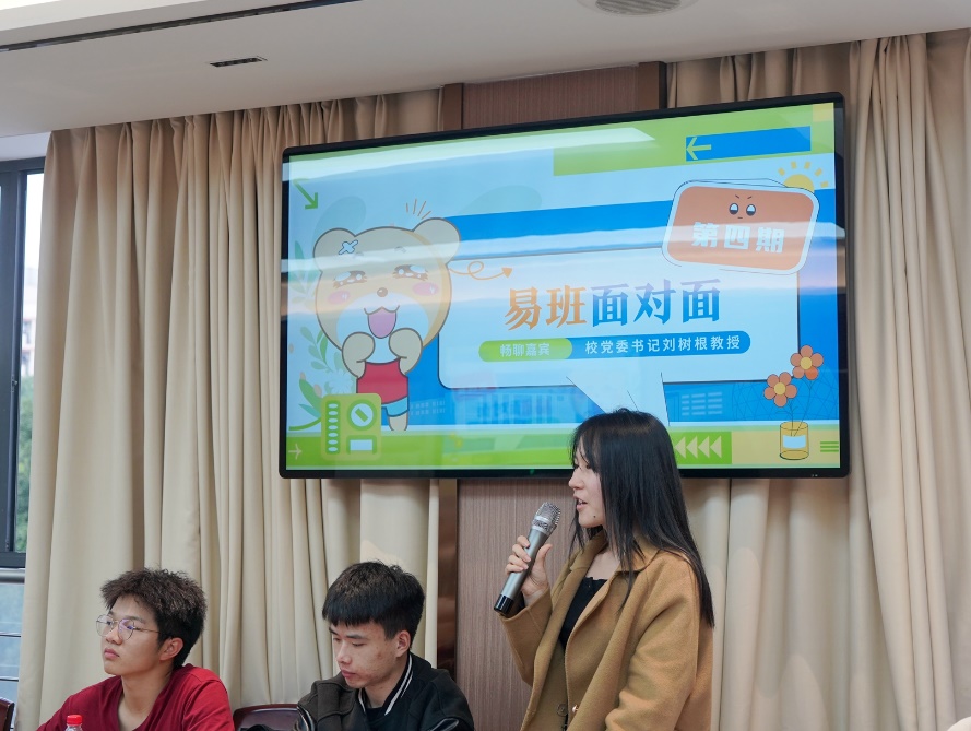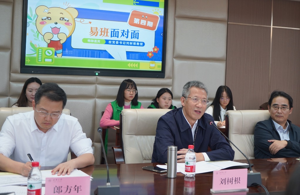11月2日下午,第四期“易班面对面”主题活动在办公楼212会议室举行。校党委书记刘树根,副校长费凌、郎方年以及学校相关职能部门负责人与同学们围桌而坐,倾听学生的意见建议,现场为同学们答疑解惑。党委宣传部、学生工作部、保卫处、校团委、教务处、研究生院、招生与就业处、后勤服务总公司等部门负责人参加了本次面对面交流活动。