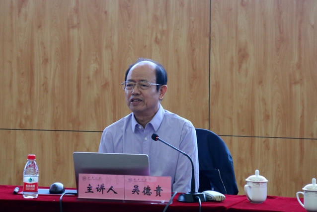 吴德贵教授以《共产党员要努力成为时代先锋》为题,从深刻理解主题教育重大意义、学深悟透习近平总书记讲话精神、自觉接受主题教育思想洗礼三个方面作了一场精彩的报告,对“不忘初心、牢记使命”主题教育相关精神进行了系统全面的阐述。