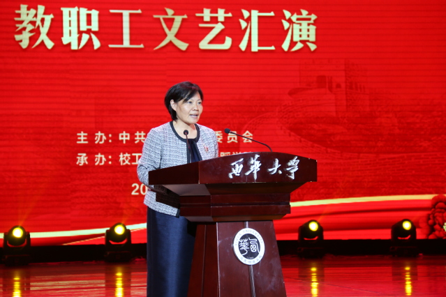 全场师生共同奏唱《国歌》后,校党委书记边慧敏致辞,她对精心筹备此次文艺汇演的老师们表示感谢,并肯定了广大教职工在教书育人道路上的辛勤耕耘和为学校发展建设做出的贡献,向老师们致以温暖的问候。边书记号召全校教职工以新中国70周年华诞为新起点,牢记教育报国的初心,把爱国热情转化为实际行动,以昂扬向上的新姿态和勇于担当的新作为,推动学校更好更快发展,为中华民族伟大复兴而不懈奋斗。