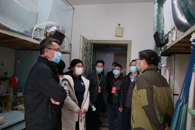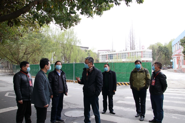 3月10日上午,校长刘树根,副校长王政书、费凌、刘小兵一行来到学校疫情防控工作一线,检查防控措施落实情况。党政办公室、学生工作部、保卫处、基建处、后勤管理处、后勤服务总公司等相关负责人随同检查。