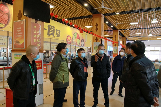 在一食堂,刘校长一行查看了食堂环境卫生情况,详细了解疫情防控期间食堂的日常管理、供应及防控措施。在充分肯定后勤防控工作的同时,刘校长提出要求,要高度重视疫情防控期间的饮食工作,把好食品安全关,为留校学生和奋战在学校疫情防控工作一线的教职工提供安全、优质的餐饮服务。