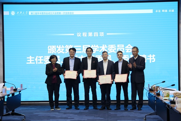 校党委书记边慧敏,校长刘树根为第三届学术委员会主任委员、副主任委员颁发聘书
