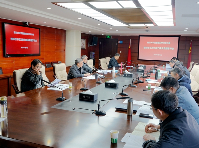 1月18日上午,校党委理论学习中心组“加强党委领导班子政治能力建设”专题学习会在办公楼212会议室举行。全体校领导,党政办、纪委办公室、党委组织部、党委宣传部主要负责人参会。校党委书记余孝其主持会议。