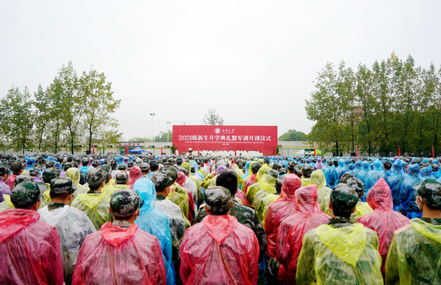 betway西汉姆联平台2021级新生开学典礼暨军训开训仪式现场