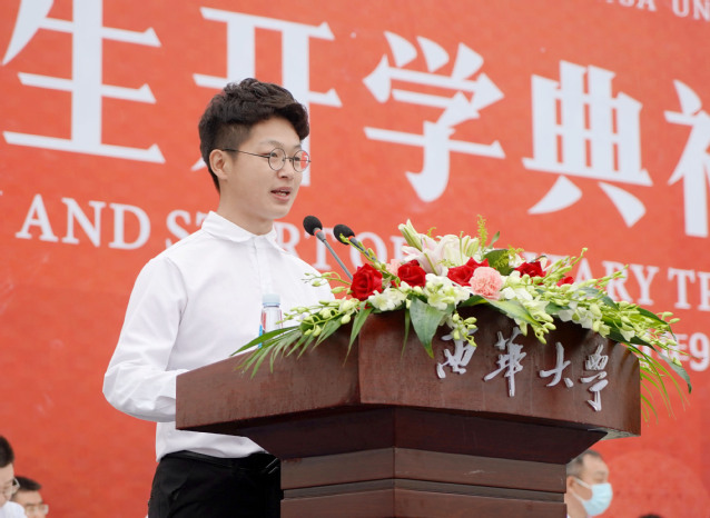 汽车与交通学院车辆工程专业李佳霖作为新生代表发言,他将入学来在西华感受到的温暖娓娓道来,呼吁同学们听从自己内心的号召,砥砺前行,肩负起时代重任,以青春之我创建青春之校园、青春之国家。