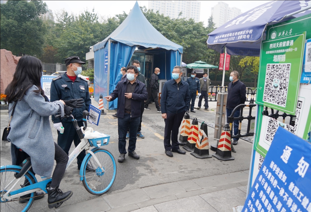 学校领导在学生公寓检查疫情防控工作