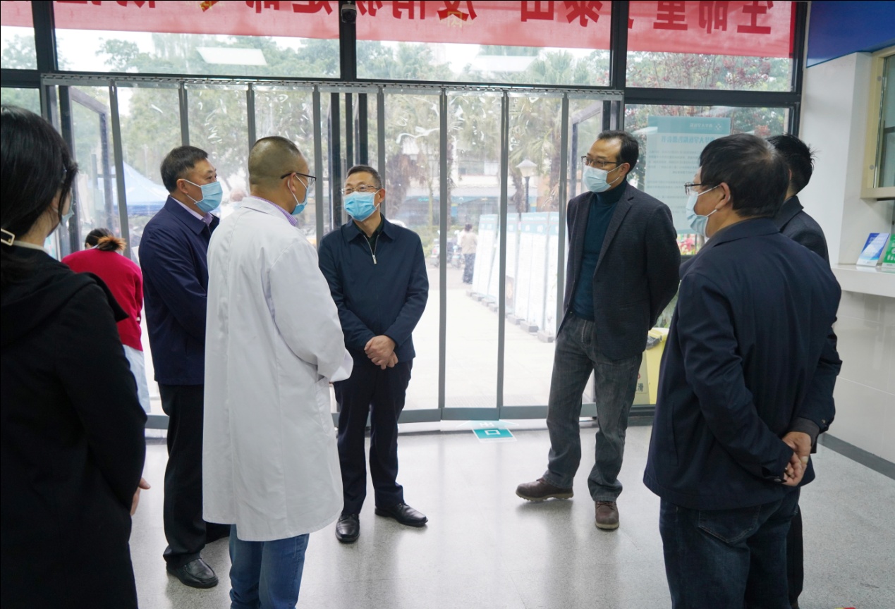 学校领导在校医院检查疫情防控工作