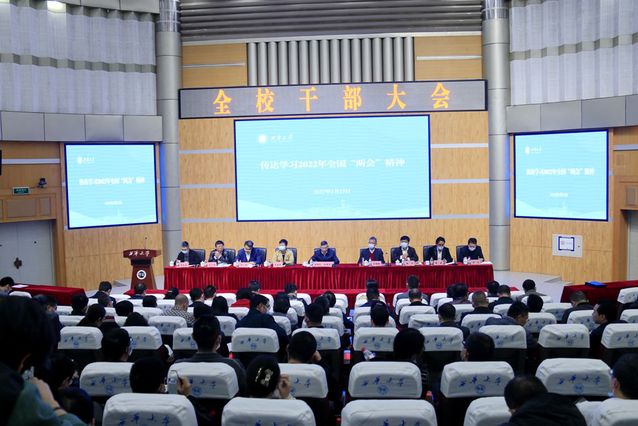 3月23日下午,学校在四教报告厅召开全校干部大会,传达学习2022年全国“两会”精神,部署学校2022年安全稳定工作。全体校领导,中层副职以上干部,职代会、教代会负责人;在校的省、市以上党代表、人大代表、政协委员;民主党派在校负责人和正高级专业技术职务人员代表参加会议。校党委书记余孝其主持干部会。