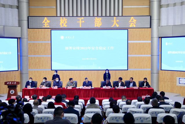 校党委副书记张力主持2022年学校安全稳定工作会议,安排布置近期重点工作。他指出,必须统筹发展和安全,增强忧患意识、树牢底线思维,坚决守住不发生安全稳定风险的底线;要守住校园安全红线和疫情防控底线,守住意识形态和网络舆情高压线;全校各单位上下齐心、密切配合,共同做好校园安全稳定工作。