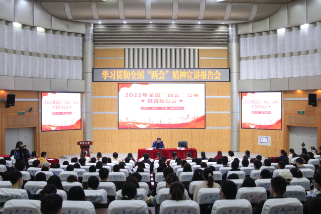 为增强学生对两会精神、两会内容的深入了解,提高大学生时代责任使命感,提升综合素质,3月30日上午,全国人大代表、副校长许州在四教报告厅为学校学生代表宣讲本届“两会”主要精神。学工部部长郑晓康主持会议。